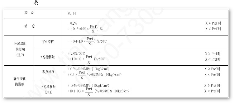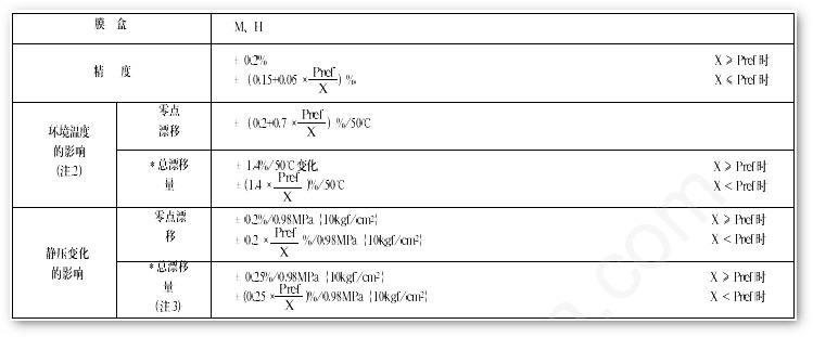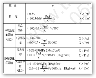 三、EJA118W精度、環(huán)境溫度以及靜壓變化的影響說明圖