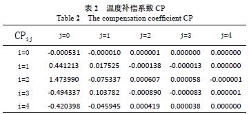 根據(jù)式(7)工控機(jī)利用軟件MATLAB 中的函數(shù)[CPT,CPint, b, bint, state]=regress(PT, A, 0.05) 即可求出溫度補(bǔ)償系數(shù)CP。