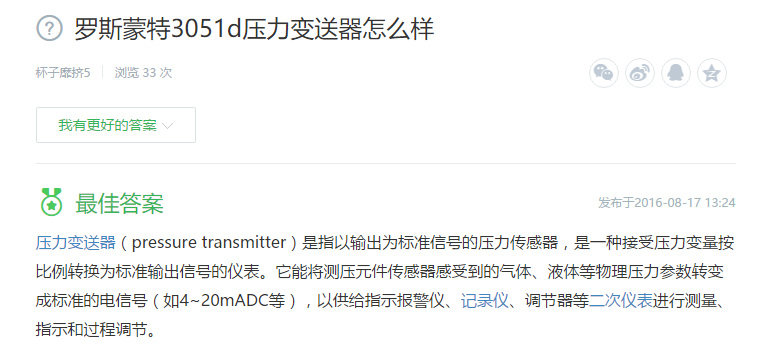 1、羅斯蒙特3051d壓力變送器怎么樣?