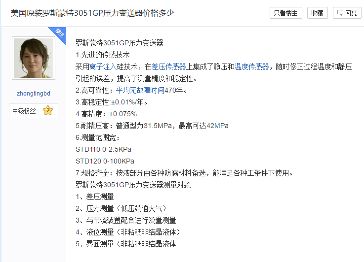 羅斯蒙特3051GP壓力變送器的性能可靠性
