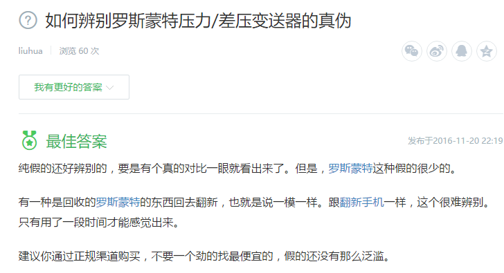 Rosemount羅斯蒙特壓力變送器真假鑒定指導(dǎo)