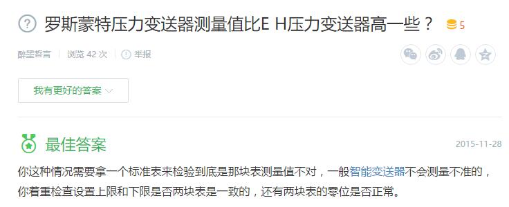 3、羅斯蒙特壓力變送器測量值比E H壓力變送器高一些?