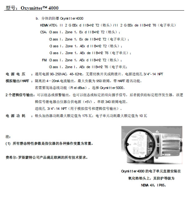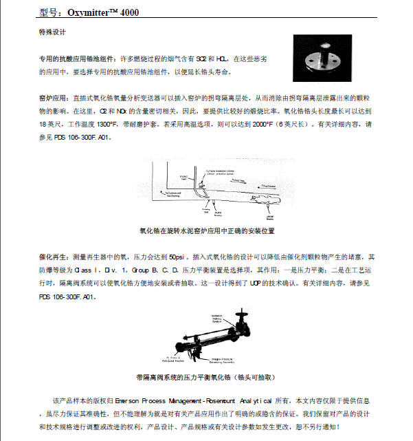 羅斯蒙特氧化鋯分析儀主要用于鍋爐的氧量分析,對(duì)煙氣的含氧量做出準(zhǔn)確的判斷;主要特點(diǎn):改進(jìn)了氧化鋯探頭鉑電極的制作工藝及檢測(cè)器的結(jié)構(gòu)設(shè)計(jì),延長(zhǎng)了傳感器的連續(xù)使用壽命,輸入輸出采用光電隔離,使儀表的抗干擾能力大大提高,智能化程度高,所有的參數(shù)通過(guò)儀表的鍵盤設(shè)定;多功能數(shù)字顯示,儀表除顯示當(dāng)時(shí)的氧含量外,還可通過(guò)鍵盤在線查看當(dāng)時(shí)的氧勢(shì)、爐溫、加熱電壓、測(cè)量量程、上、下限報(bào)警等內(nèi)容,并在儀表發(fā)生故障時(shí)顯示八種故障類別信號(hào)提示。