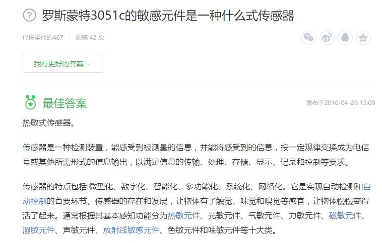 熱敏式傳感器。傳感器是一種檢測(cè)裝置,能感受到被測(cè)量的信息,并能將感受到的信息,按一定規(guī)律變換成為電信號(hào)或其他所需形式的信息輸出,以滿足信息的傳輸、處理、存儲(chǔ)、顯示、記錄和控制等要求。傳感器的特點(diǎn)包括:微型化、數(shù)字化、智能化、多功能化、系統(tǒng)化、網(wǎng)絡(luò)化。它是實(shí)現(xiàn)自動(dòng)檢測(cè)和的首要環(huán)節(jié)。傳感器的存在和發(fā)展,讓物體有了觸覺、味覺和嗅覺等感官,讓物體慢慢變得活了起來。通常根據(jù)其基本感知功能分為、光敏元件、氣敏元件、力敏元件、、、聲敏元件、、色敏元件和味敏元件等十大類。