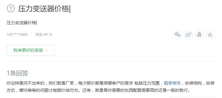 客戶提問(1):壓力變送器價(jià)格一般是多少