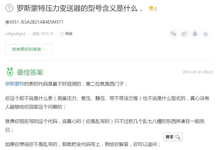 的表的代碼是最不好觀測的,第二位就是西門子;你這個即不說是什么表(測量壓力、差壓、靜壓、帶不帶法蘭等)也不說是什么型式的,真心沒有人能夠給你回答這個問題的;就像你現(xiàn)在寫的這個代碼,說真心的(你是亂寫的)只不過把幾個亂七八糟的東西拼湊在一起而已;如果你想說你不是亂寫的,那就把全代碼寫上,我給你解答,你可以追問;