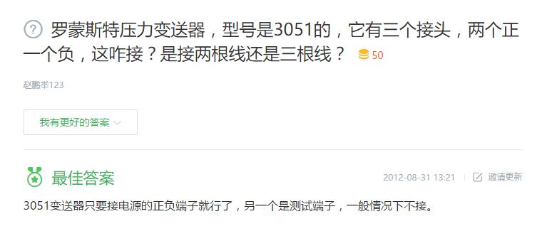 1、羅蒙斯特壓力變送器,型號是3051的,它有三個接頭,兩個正一個負(fù),這咋接?是接兩根線還是三根線?