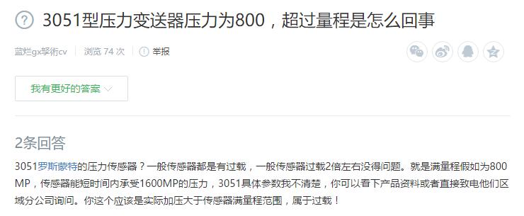 2、3051型壓力變送器壓力為800,超過量程是怎么回事?