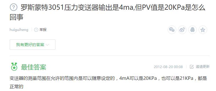 1、羅斯蒙特3051壓力變送器輸出是4ma,但PV值是20KPa是怎么回事?