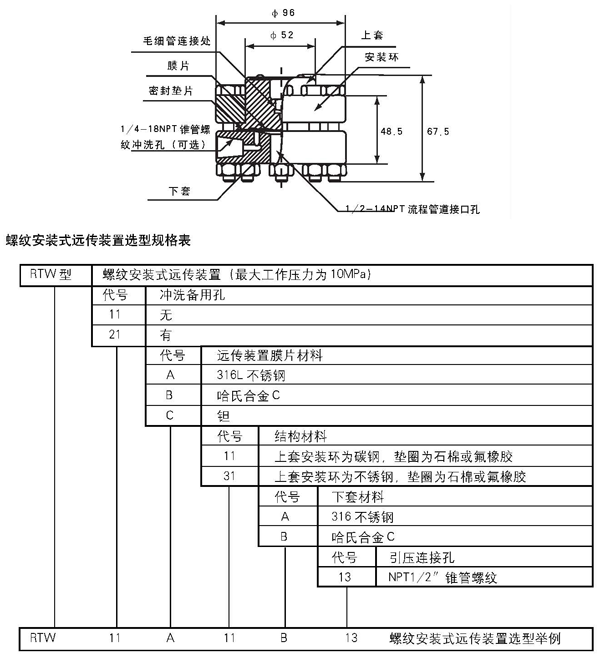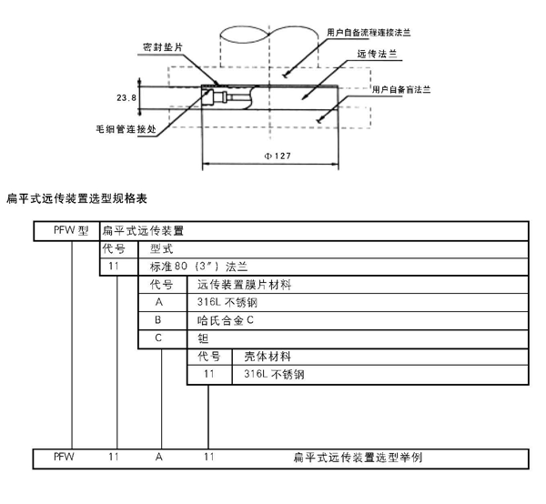 (零基準校驗范圍,參考條件下,硅油充液,316L不銹鋼隔離膜片)遠傳裝置是用于防止管道中的介質(zhì)直接進入變送器里的壓力傳感器組件中,它與變送器之間是靠注滿流體的毛細管連接起來的。SLK3051DP-R智能遠傳差壓變送器用于測量液體、氣體或蒸汽的液位、密度和壓力,然后將其轉(zhuǎn)換為4~20mA DC信號輸出。SLK3051DP-R智能遠傳差壓變送器也可與HART手操器相互通訊,通過它進行設(shè)定、監(jiān)控。