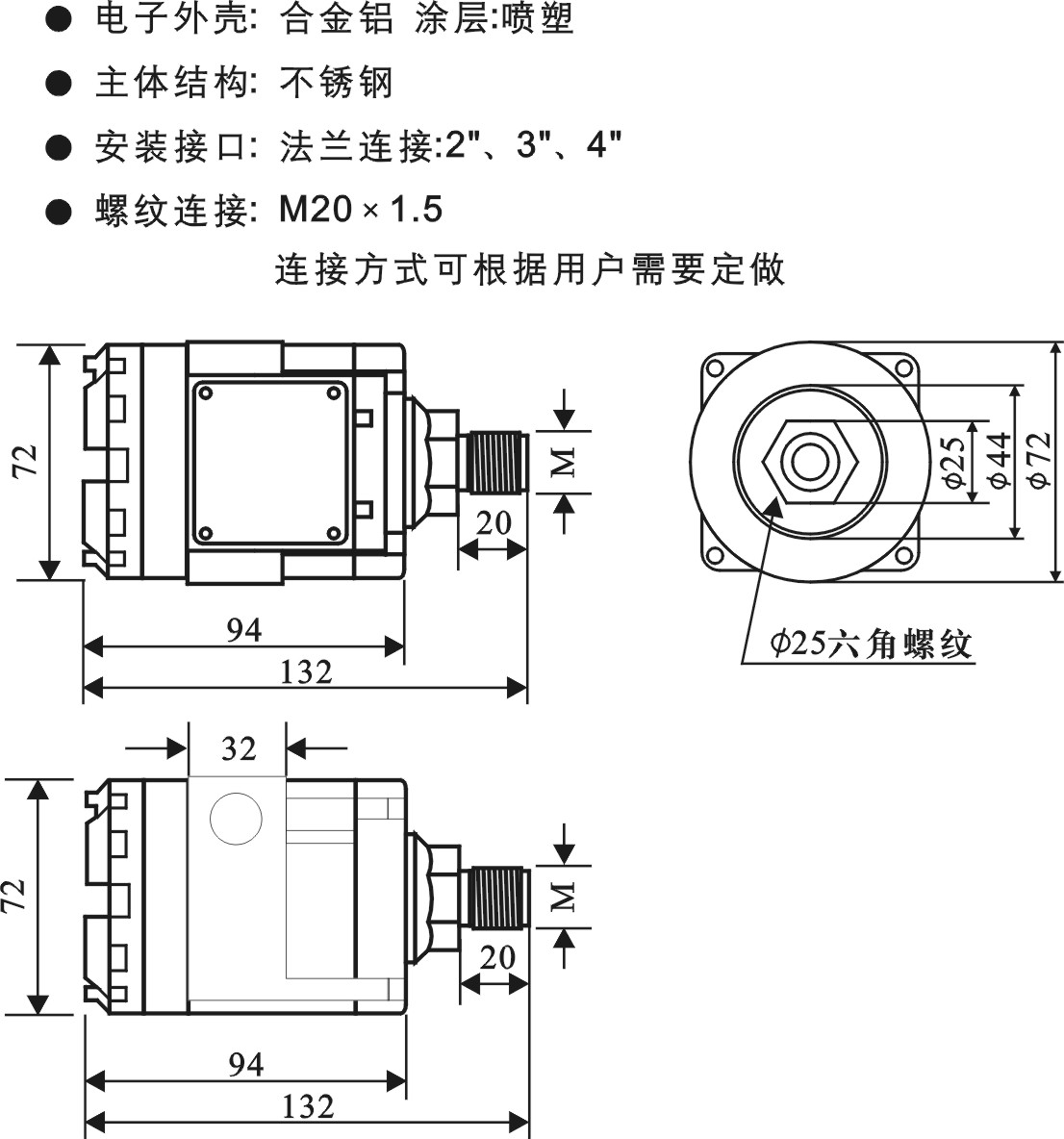 SLK-802型壓力變送器變送器選用進(jìn)口高精度、高穩(wěn)定性防腐芯片組裝,采用激光焊接工藝將芯片與外殼焊接在一起,無壓力腔體,適用于各種易堵塞,要求保持衛(wèi)生,便于清洗或無菌環(huán)境的壓力測量和控制。該產(chǎn)品具有較高的工作頻率,適于動態(tài)測量。 技術(shù)參數(shù):量程范圍:0-0.06~40000kPa; 結(jié)構(gòu)尺寸:接線方式: