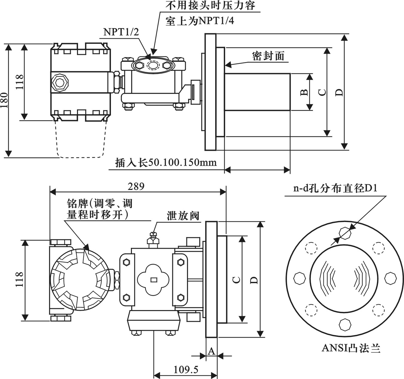 SLK1151型法蘭式液位變送器測(cè)量液柱靜壓頭,此壓力等于取壓呂以上的液柱高度乘以液體的特定比重,與容器的容積和形狀無(wú)關(guān)。測(cè)量的質(zhì)量在很大程度上取決于變送器和導(dǎo)壓管的安裝是否正確。SLK1151LT型變送器是設(shè)計(jì)用在惡劣的環(huán)境中的,在選擇安裝場(chǎng)所時(shí),要小心地減少變送器所受到的溫度梯度、溫度波動(dòng)、振動(dòng)的沖擊。