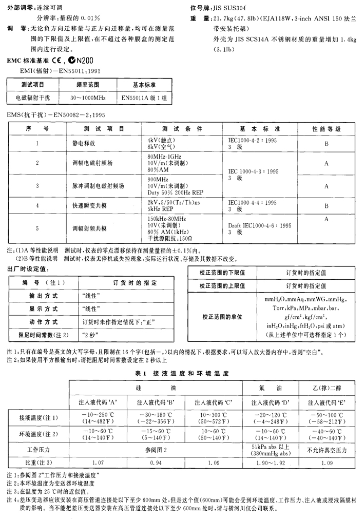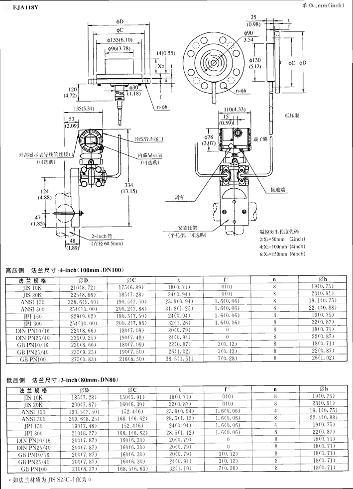 EJA118W、EJA118N、EJA118Y隔膜密封式差壓變送器